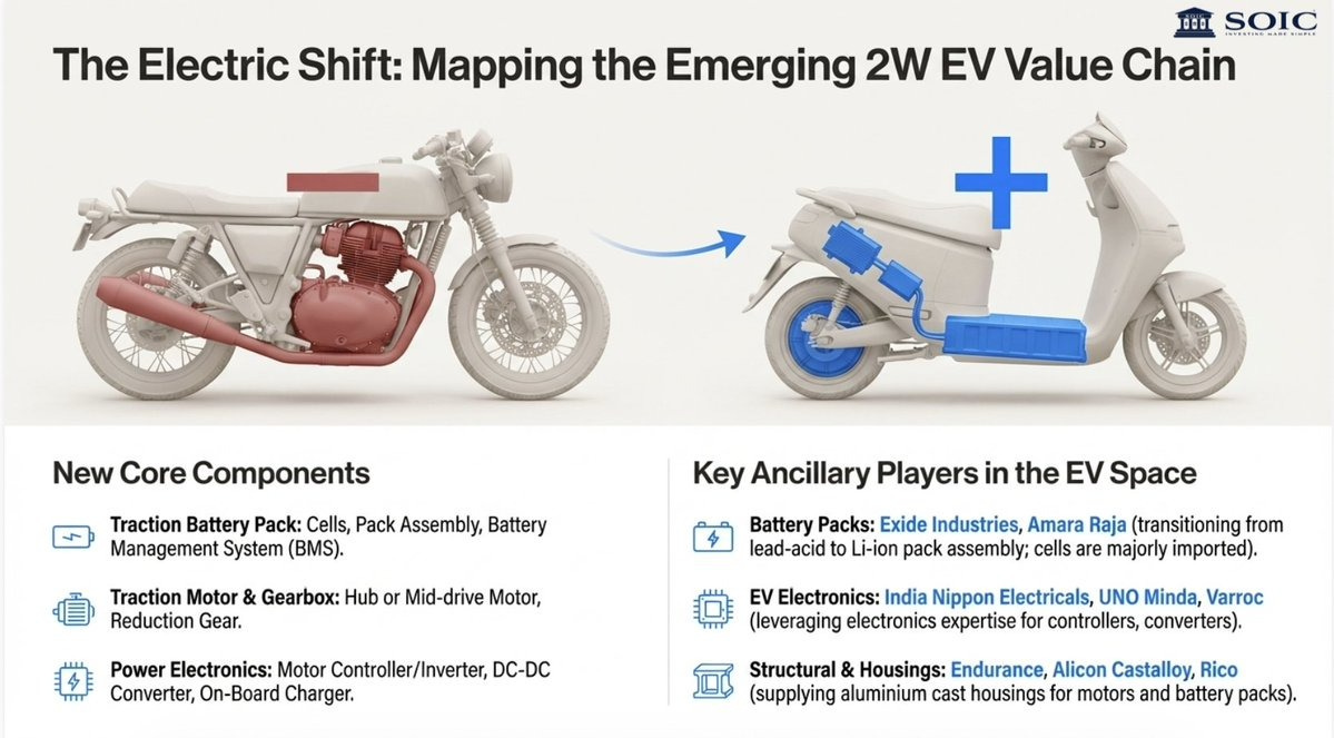 India Nippon Electricals, UNO Minda, and Varroc are adapting to provide necessary EV electronics, controllers, and DC-DC converters.