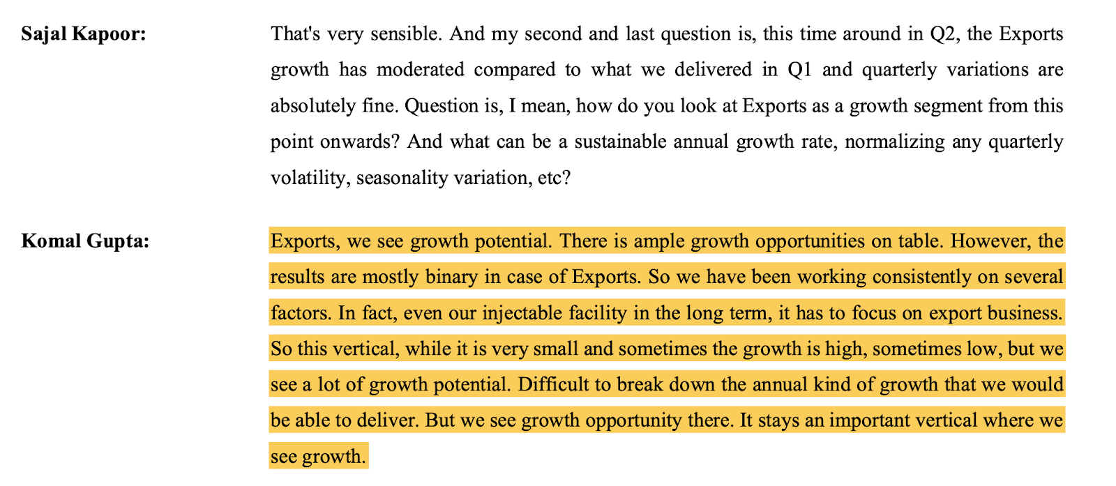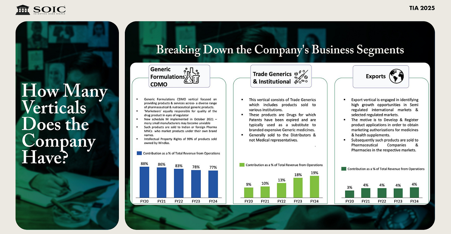 For Windlas, the export segment thus has a lot of room to grow from its small base. The company will still have to navigate regulatory requirements in each target country, ensure consistent quality, and build distribution relationships. But given the overall macro trends, where emerging markets are increasing their pharmaceutical consumption, Windlas’s export arm could see continued high growth. The management considers exports as an “optionality” or additional upside, while the domestic business remains the core. In sum, the export market provides Windlas a long term growth avenue: if even a few of its products gain traction in multiple countries, the volumes could scale up significantly. With 80 products already being sold abroad and more in the pipeline, Windlas is steadily laying the groundwork to make its mark internationally.